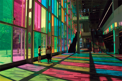 Cuando el diseño arquitectónico se vuelve más sofisticado, el vidrio pasa a cumplir un rol aun más significativo. El laminado color es ideal para aquellas aplicaciones donde el usuario requiere un grado mayor de diseño y una tonalidad artística, que combinado a un nivel de seguridad pueden afrontar los proyectos mas exigentes.
